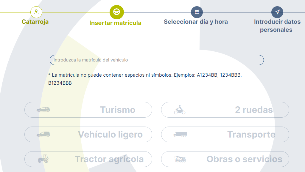 Ahora, añade tu matrícula, además del tipo del vehículo.
