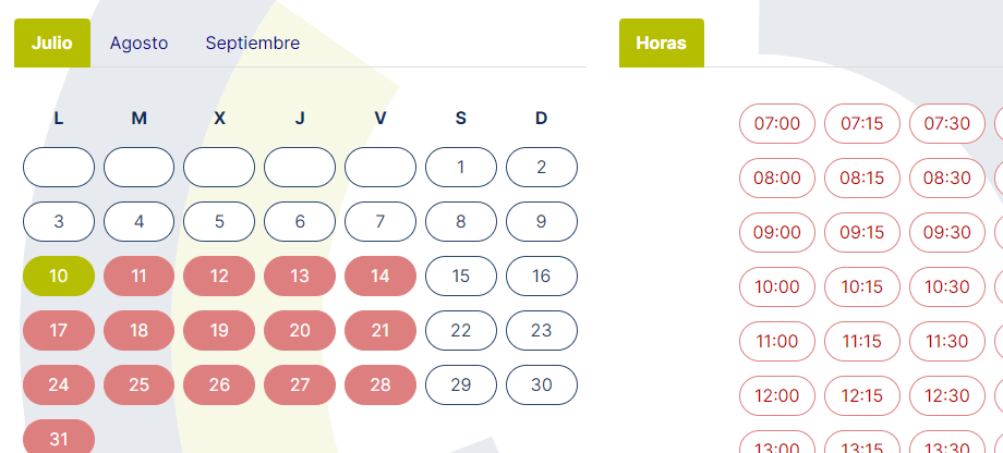 Continúa con la selección de la fecha de la cita entre las disponibles.